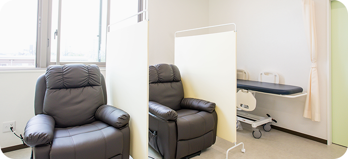 新型コロナウイルス感染症対策については、検査ごとのベッド回りのアルコール消毒、窓を開けての換気を行っています。どうぞ、安心してご相談ください。